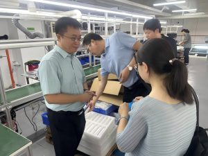 在生产现场,李教授及其团队对我们澎龙锂电在电池能量密度提升、安全性能优化以及循环寿命延长等方面的技术创新表现出浓厚的兴趣。他们不时停下脚步,与技术人员深入交流,分享学术见解,现场气氛热烈而融洽。